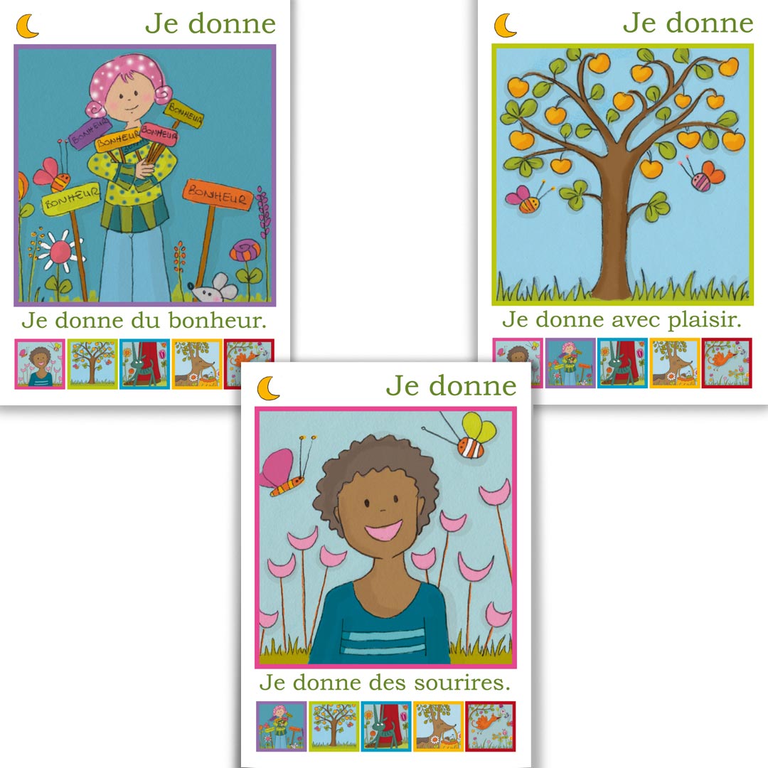 D’abord il y en a neuf : les familles J’accueille, J’ai, J’aime, J’écoute, Je suis, J’exprime, Je donne, Je prends soin et Je souhaite.