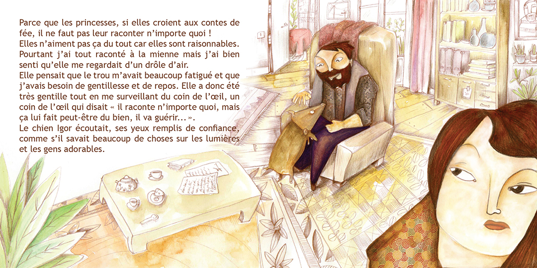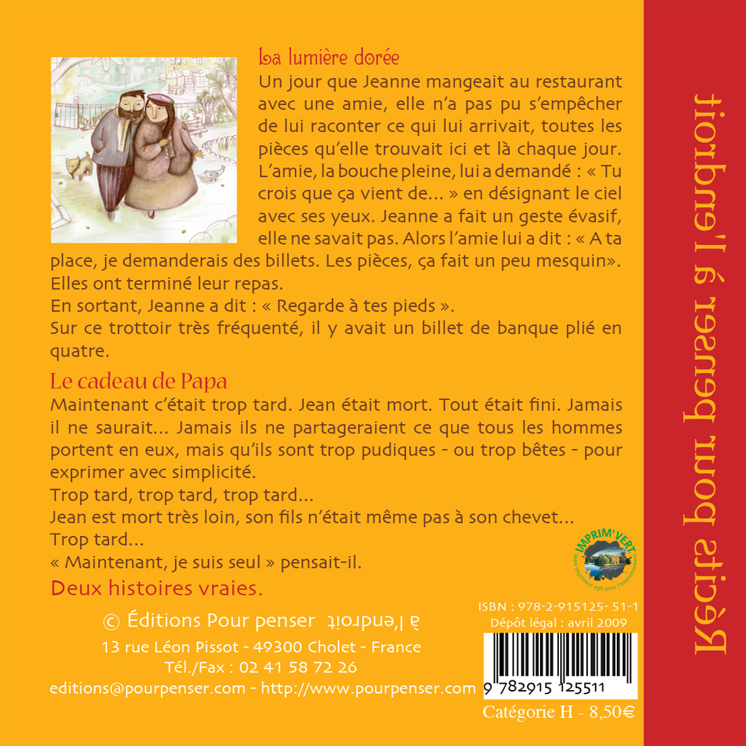« Un jour que Jeanne mangeait au restaurant avec une amie, elle n’a pas pu s’empêcher de lui raconter ce qui lui arrivait, toutes les pièces qu’elle trouvait ici et là chaque jour. L’amie, la bouche pleine, lui a demandé : « Tu crois que ça vient de… » en désignant le ciel avec ses yeux. Jeanne a fait un geste évasif, elle ne savait pas. Alors l’amie lui a dit : « À ta place, je demanderais des billets. Les pièces, ça fait un peu mesquin ». Elles ont terminé leur repas. En sortant, Jeanne a dit : « Regarde à tes pieds ». Sur ce trottoir très fréquenté, il y avait un billet de banque plié en quatre. »